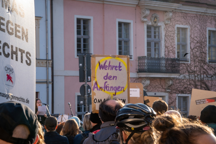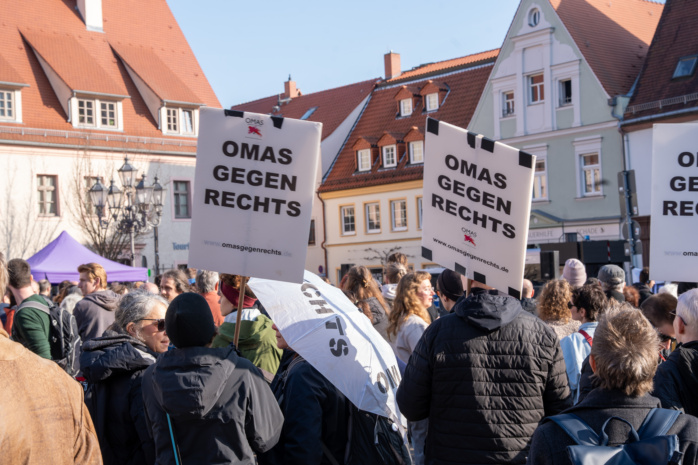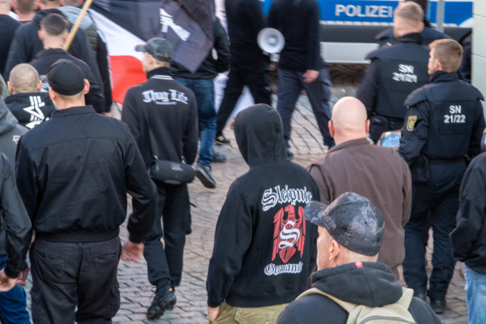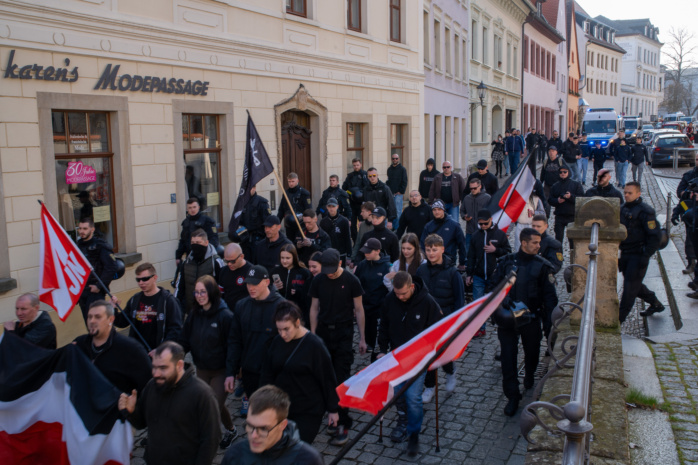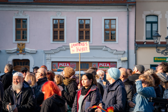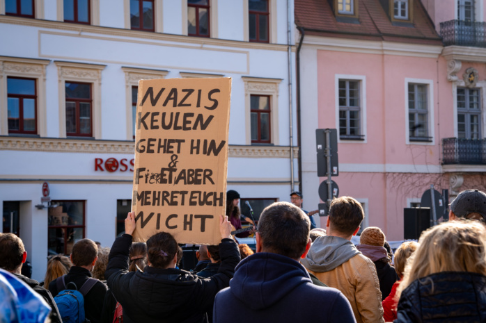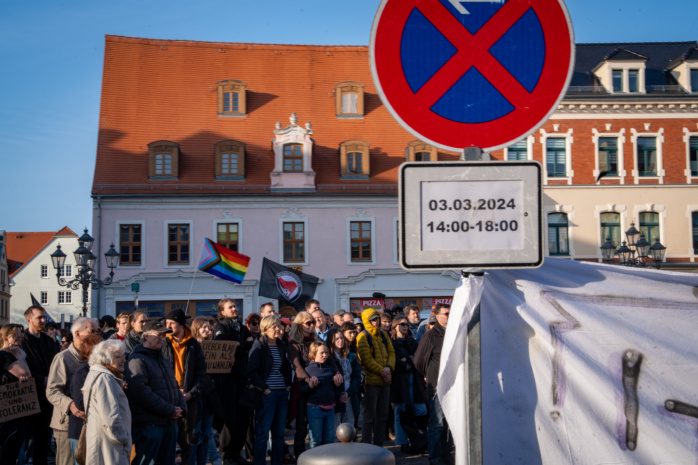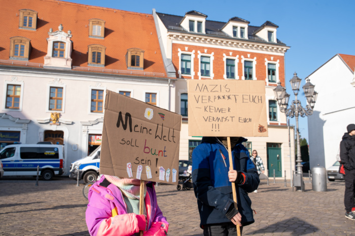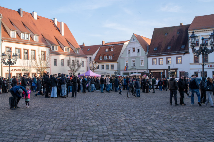 Am Sonntag fand in Wurzen eine Kundgebung für Demokratie auf dem Marktplatz statt. Etwa 300 bis 400 Personen beteiligten sich daran. Auch Neonazis hatten mobilisiert und waren mit einigen Dutzend Personen vor Ort. Sie pöbelten mehrmals gegen Teilnehmer*innen der Demokratie-Kundgebung, wo sich ein eher bürgerlich-familiäres Publikum eingefunden hatte.