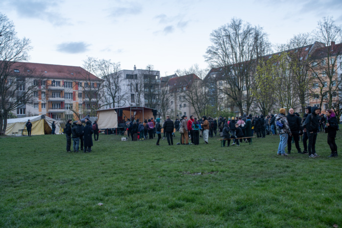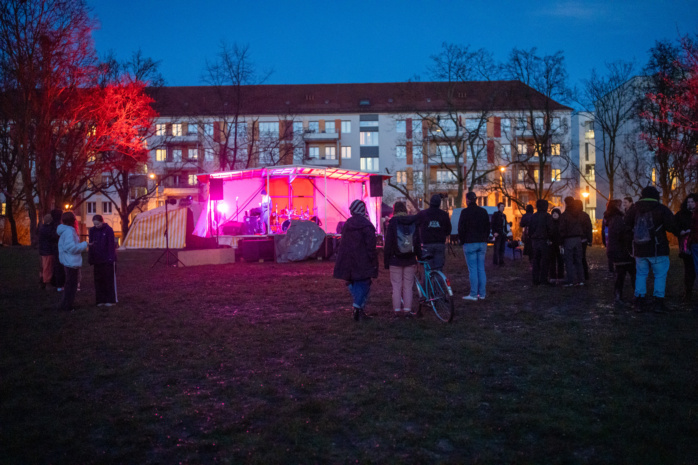 „Wir sammeln Spenden für die angesammelten Gerichtskosten der Betroffenen von Repression“, erklärte Organisator Jonas Venediger gegenüber der LZ. „Und wir machen das natürlich nicht nur heute, im Regen, im Hagel, sondern machen das immer wieder, egal unter welchen Witterungsbedingungen.“ Aufgrund der Regenschauer starteten die Acts deutlich später als angekündigt. Gegen 21 Uhr endete die Veranstaltung.