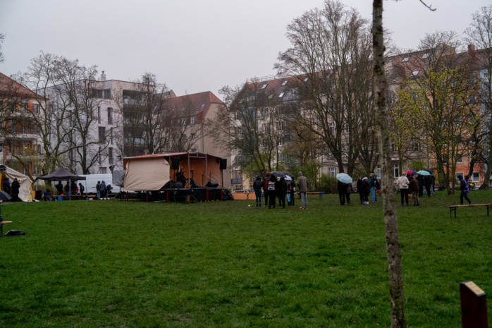 Zum dritten Mal fand am Wochenende in Leipzig die „Kesselmusik“ statt, eine Veranstaltung in Solidarität mit den Betroffenen des Polizeikessels vom sogenannten „Tag X“. Rund 150 Personen waren bei regenschauerdurchsetztem Aprilwetter am Samstag auf den Alexis-Schumann-Platz in der Südvorstadt gekommen – dort, wo am 3. Juni 2023 der Leipziger Grünen-Stadtrat Jürgen Kasek einen Aufzug unter dem Motto „Die Versammlungsfreiheit gilt auch in Leipzig“ angemeldet hatte.