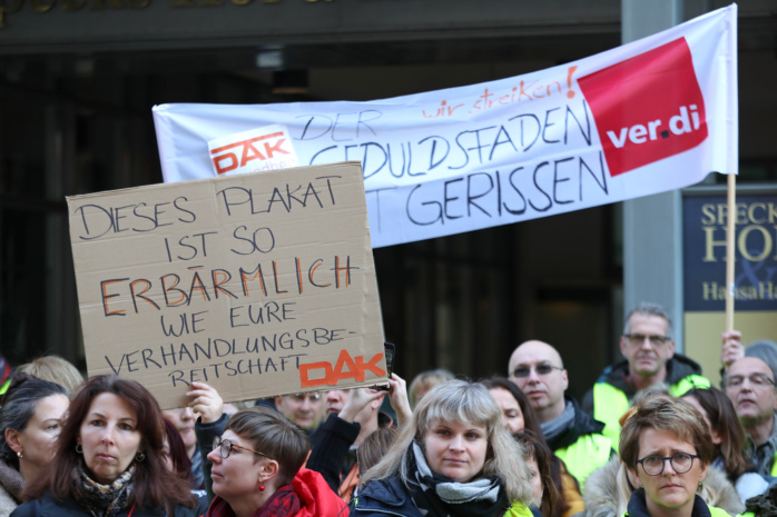 Nicht nur Beschäftigte der Deutschen Bahn und das Kabinenpersonal der Lufthansa, sondern auch Beschäftigte der Krankenkassen haben am Dienstag bundesweit gestreikt. Die Dienstleistungsgewerkschaft Verdi hatte die Angestellten von Barmer und DAK-Gesundheit zu einem bundesweiten Warnstreik aufgerufen.