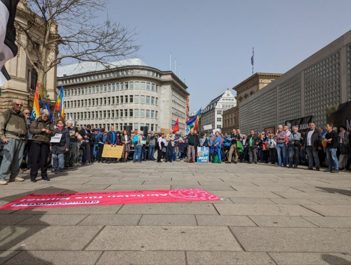 Blickt man auf die Geschichte der „Ostermärsche“ und die Vielzahl aktueller Konflikte und Kriege, wirkt die Beteiligung eher gering. In den 80er Jahren waren Hunderttausende auf die Straßen gegangen. In Leipzig waren es am Samstag etwa 500 Personen. Redner*innen forderten unter anderem den Austritt Deutschlands aus der Nato und mehr Geld für Bildung statt Militär. Gefordert wurde auch „Freiheit für Palästina“.