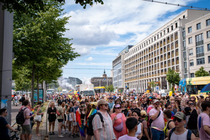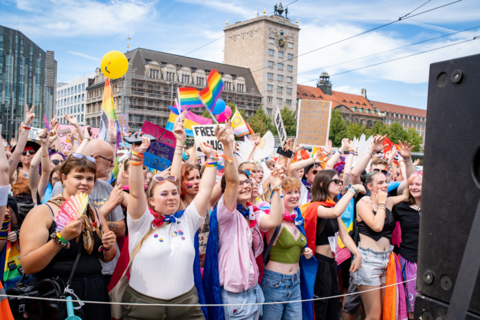 Etwa 19.000 Personen beteiligten sich am Samstag am Umzug anlässlich des Christopher-Street-Days in Leipzig. Wie die Polizei mitteilte, verlief die Parade weitgehend friedlich. Die Organisator*innen des CSD gehen sogar von 20.000 Teilnehmenden aus.