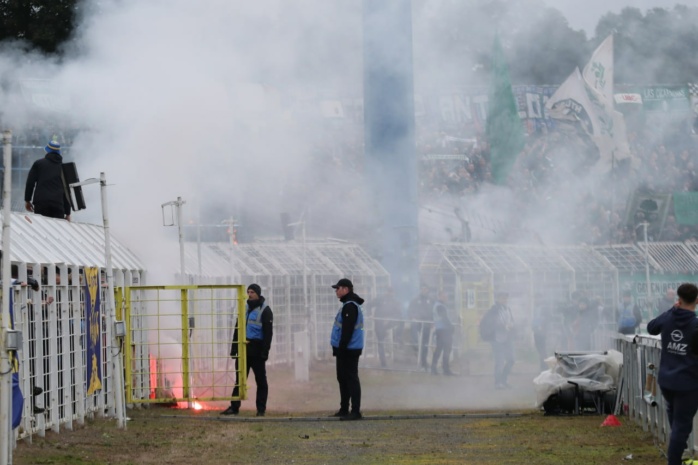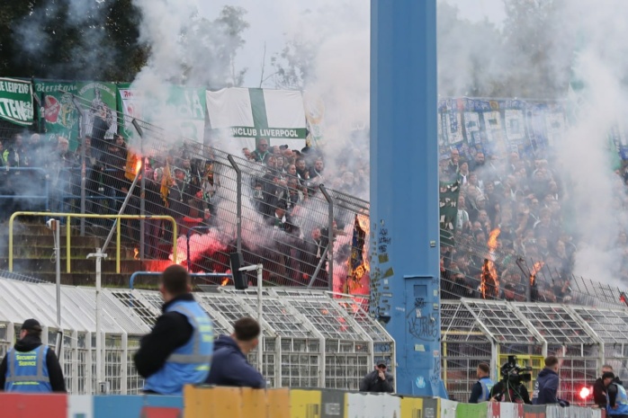 Nach etwa 60 Minuten gab es eine kurze Spielunterbrechung. Einige der mehr als 1.000 anwesenden Chemie-Fans hatten Gegenstände im Gästeblock verbrannt und Pyrotechnik gezündet. Auf Seiten der Lok kletterten daraufhin einige Fans auf die Zäune. Bei diesem kleinen Aufreger sollte es im Verlauf der Partie bleiben.