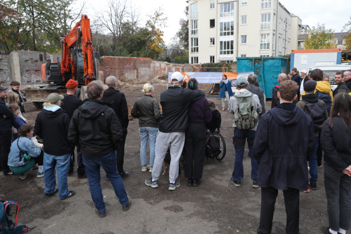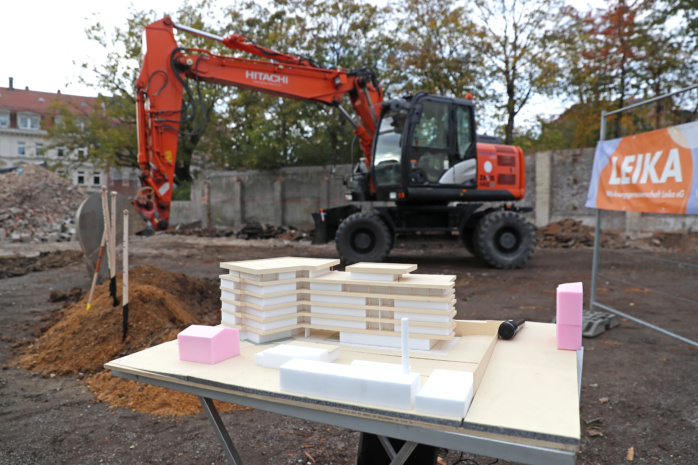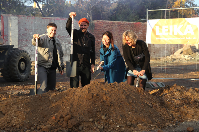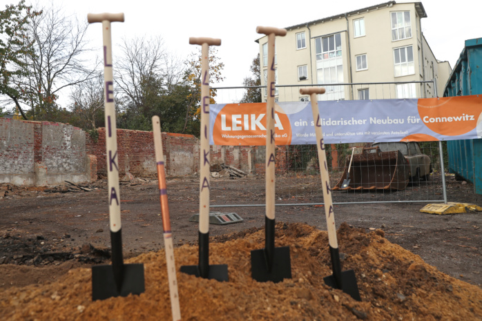 „Die LEIKA hat sich gegründet, weil es für die Menschen immer weniger Möglichkeiten gibt, dauerhaft preiswerten Wohnraum zu finden. Auch in Connewitz gibt es immer weniger sozialen Wohnungsbau so Christian Schneider, Mitglied der LEIKA. Es sei inzwischen nicht mehr leicht, geeignete Grundstücke zu finden. „Wir freuen uns natürlich sehr, dass heute der Bau unseres Hauses beginnt [und] hoffen, dass wir in anderthalb bis zwei Jahren hier einziehen können.“
