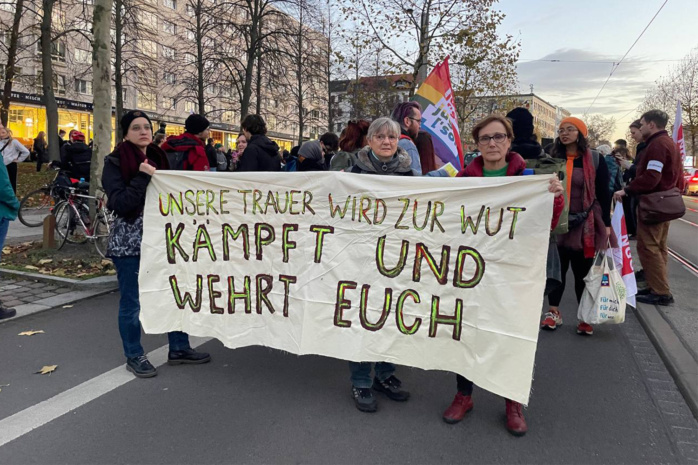 Anlässlich des Aktionstages fanden auch in Leipzig heute mehrere Veranstaltungen statt. Mehrere hundert Personen fanden sich um 15 Uhr am Connewitzer Kreuz zur Kundgebung unter dem Titel „Unsere Trauer wird zur Wut“ ein. Redebeiträge wurden unter anderem von Mitgliedern des Deutschen Juristenbund (DJB) und des Deutschen Gewerkschaftsbund (DGB) gehalten.