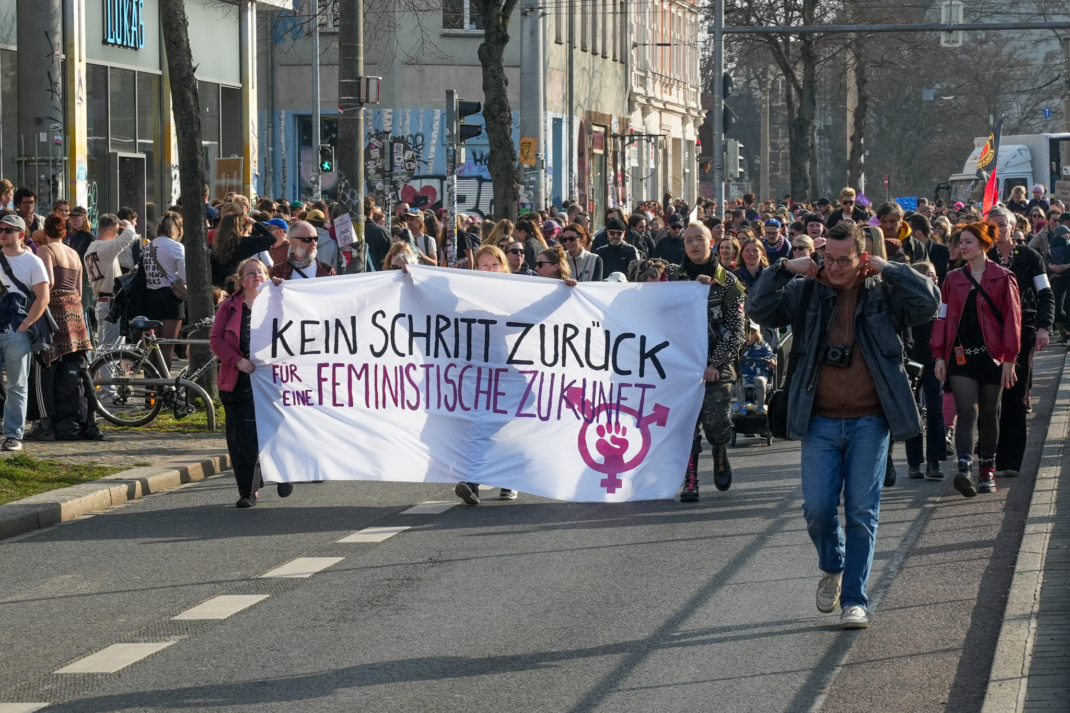 So auch in Leipzig: Am Samstag haben mehrere tausend Menschen an verschiedenen Demonstrationen zum Feministischen Kampftag teilgenommen. Die wohl größte Demonstration startete um 14:30 Uhr am Connewitzer Kreuz. Sie stand unter dem Motto „Kein Schritt zurück – für eine feministische Zukunft!“. Zwei weitere Demonstrationen fanden vor dem Grassimuseum und auf dem Wilhelm-Leuschner-Platz statt. Laut LVZ schätzte die Polizei die Gesamtzahl bei allen Demonstrationen auf über 5.000 Personen. Hier geht’s zum LZ-Bericht.