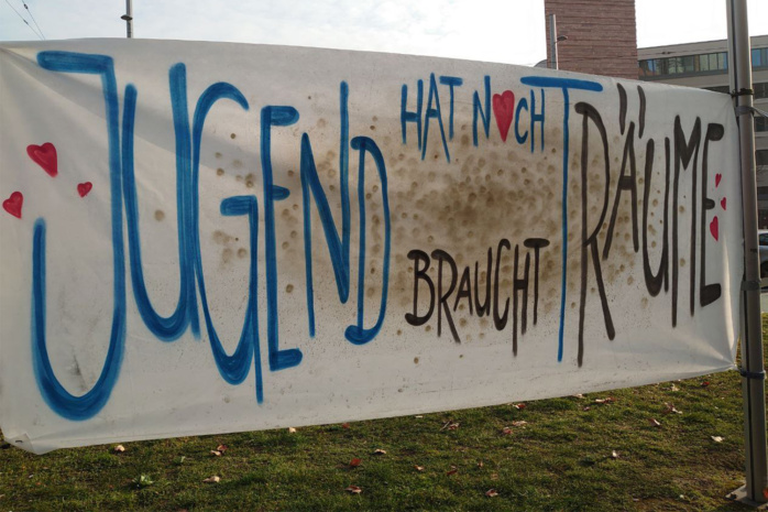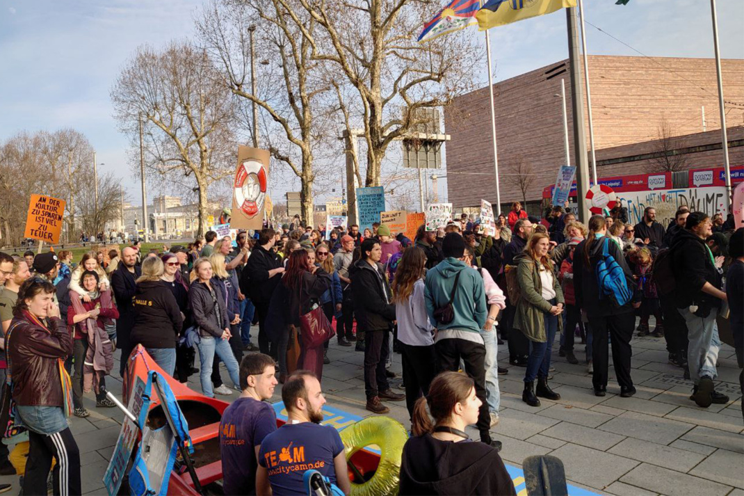 „In einer Zeit, in der junge Menschen durch Pandemie, Klimakrise, Kriege und soziale Unsicherheiten ohnehin enormen Belastungen ausgesetzt sind, dürfen wir Ihnen nicht die Schwimmflügel stutzen“, hieß es im Aufruf zu der Protestaktion, zu welcher manche Personen mit Schwimmringen etc. gekommen waren.