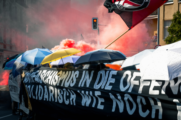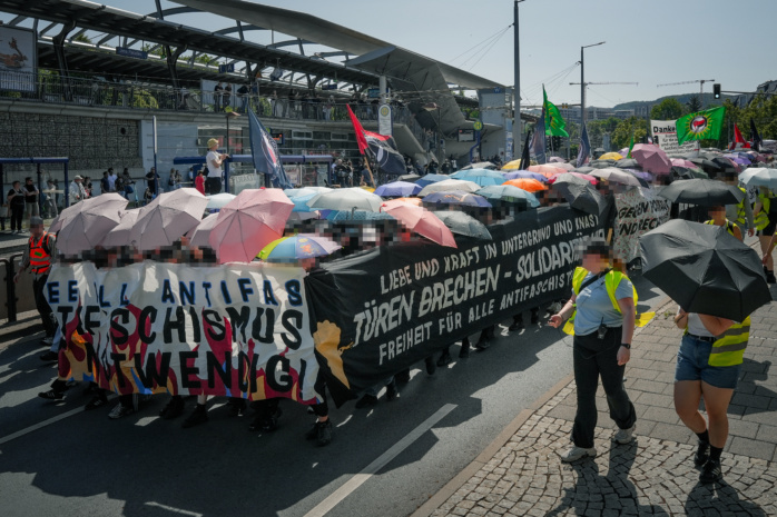 Im thüringischen Jena zogen am Samstag tausende Menschen im Rahmen einer „antifaschistischen Kundgebung“ über die Straße. Der MDR meldet 5.000 Teilnehmerinnen und Teilnehmer, nach Angaben der Veranstalter waren es gar 10.000 Menschen. Unter Rufen wie „Maja, Emmi! Wir holen euch zurück! Den Kampf um Befreiung gewinnen wir Stück für Stück!“ bewegte sich der Protest durch die Jenaer Innenstadt. Dazu aufgerufen hatte ein Bündnis linker, antifaschistischer Gruppen.