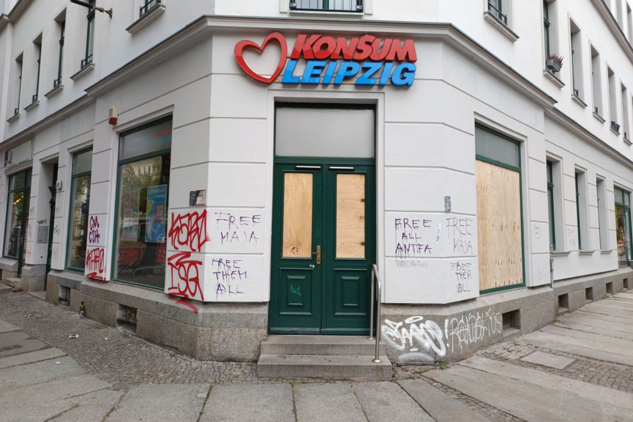 Beim Eintreffen der Einsatzkräfte wurde Pyrotechnik festgestellt. Polizisten seien mit Gegenständen beworfen worden, heißt es, zudem brannten diverse Baustellenabsperrungen, die Feuerwehr musste löschen. Eine verdächtige Gruppe sei Richtung Fichtestraße geflüchtet. An einem nahegelegenen Konsum wurden zuvor Scheiben beschädigt und Graffitis mit Bezug zum Fall der in Ungarn inhaftierten Person Maja T. angebracht.