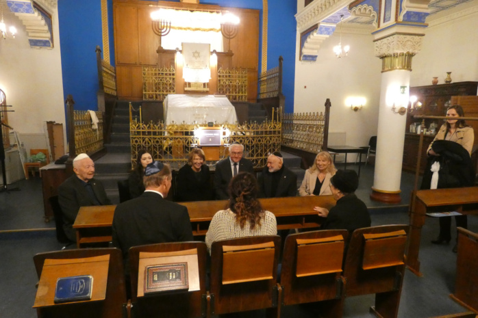 Der Terrorangriff löste den Gaza-Krieg der israelischen Regierung aus, der seinerseits zu zehntausenden Todesopfern unter Palästinensern führte und trotz zuletzt intensivierter Friedensbemühungen noch nicht beendet ist. Zunehmender Antisemitismus und Vorwürfe gegen Israels Führung haben das Klima seitdem auch in Deutschland aufgeheizt. Im Gespräch mit Steinmeier, das allerdings nicht öffentlich war, dürfte dies thematisiert worden sein – mehr dazu erzählte Gemeindemitglied Eta Zachäus hier.