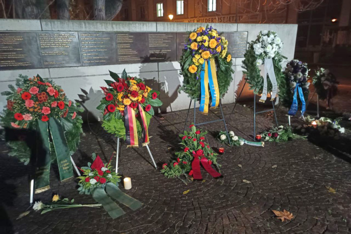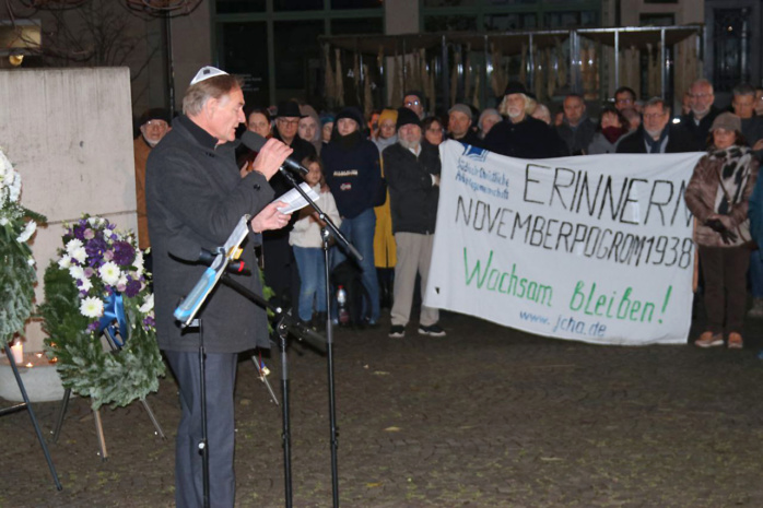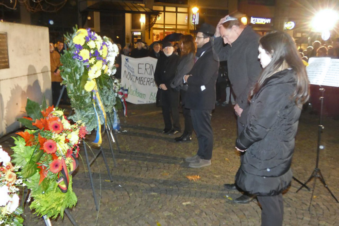 Jung beschrieb dabei eindringlich Szenen der antisemitischem Gewalt vom November 1938 in Leipzig und mahnte Widerspruch und Wachsamkeit auch in der heutigen Zeit an. Nach einem Kaddisch-Gebet des Rabbiners Eli Dues wurden Kränze niedergelegt und eine Schweigeminute gehalten.