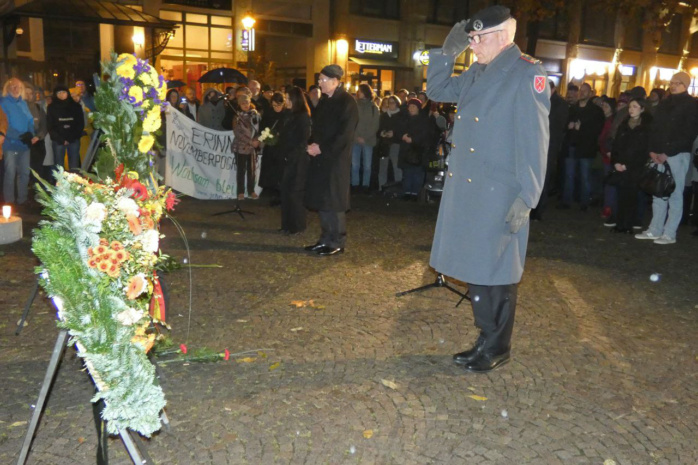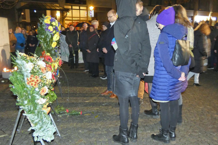 Hier, an der Ecke Gottsched-/ Zentralstraße, gedachten nun am Sonntagabend rund 200 Leipzigerinnen und Leipziger den Opfern dieser Gräueltaten. Oberbürgermeister Burkhard Jung (SPD) und Katrin Ikhilman, Mitglied der Israelitischen Religionsgemeinde zu Leipzig, hielten Gedenkansprachen.