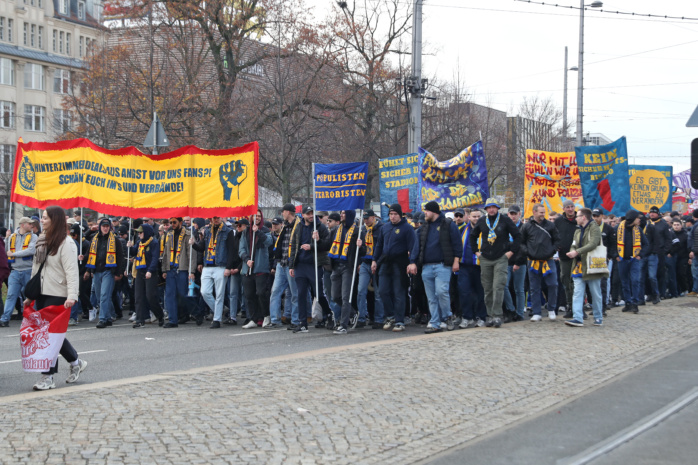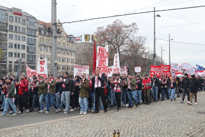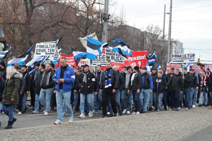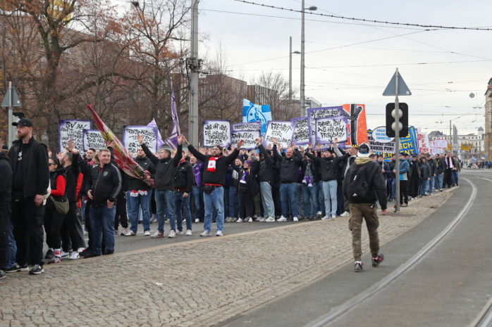 Wohl deutlich mehr als die zunächst angekündigten 5.000 Fußballfans haben am Sonntag in Leipzig gegen verschärfte Sicherheitsmaßnahmen in Stadien demonstriert. Die Polizei sprach von 8.000 Teilnehmenden, der Dachverband der Fanhilfen von mehr als 20.000 Menschen.