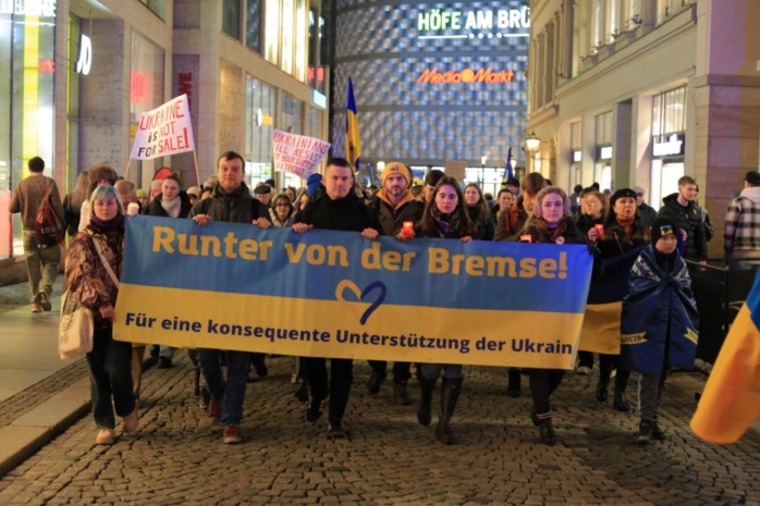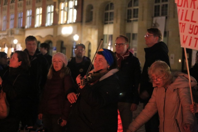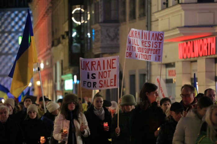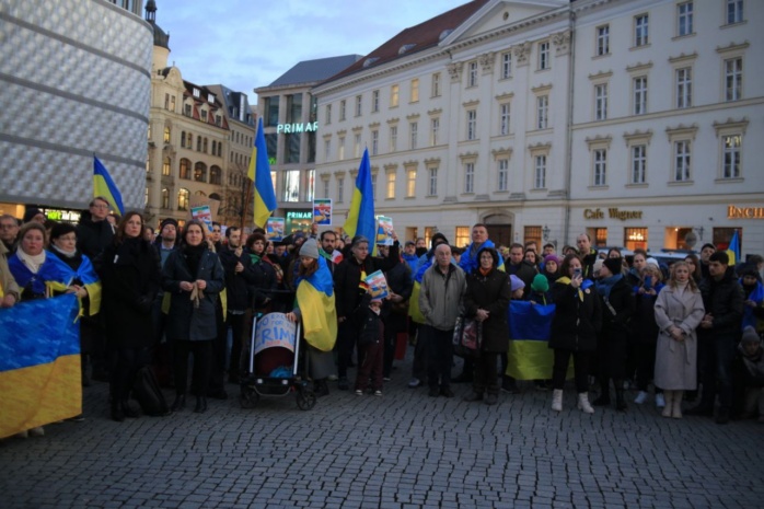 Mit einer abendlichen Demonstration in der Innenstadt von Leipzig haben Menschen heute an den vierten Jahrestag des russischen Großangriffs auf die Ukraine erinnert. Aus diesem traurigen Anlass rief der Freundeskreis Ukraine zu einer Demonstration unter dem Motto „Save Ukraine, Save Europe“ auf den Richard-Wagner-Platz. An der Versammlung durch die Innenstadt schlossen sich circa 700 bis 800 Personen an. Zum Abschluss legten die Teilnehmer Kerzen an der Nikolaisäule nieder.