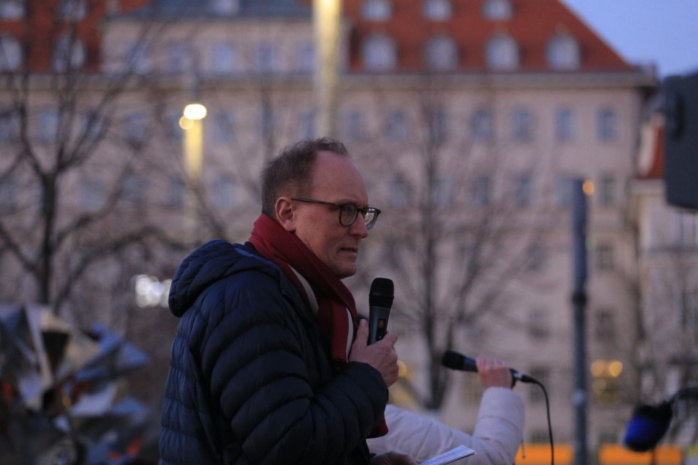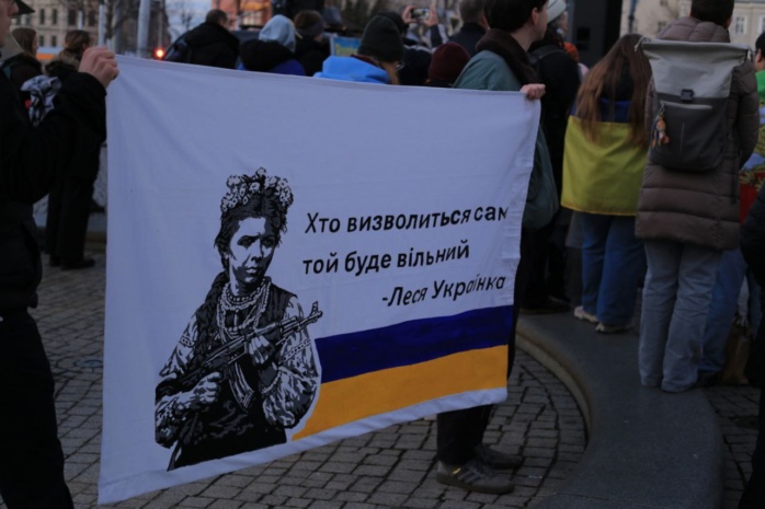 Grußworte im Namen der Stadt Leipzig richtete Verwaltungsbürgermeister Ulrich Hörning aus. „Die gesamte Stadtverwaltung steht ungebrochen zu Kiew und der Ukraine“, betonte Hörning und schloss mit „Es lebe die freie Ukraine“ ab. Zahlreiche ukrainische Rednerinnen betonten die Wichtigkeit der Unterstützung der ukrainischen Kampfes gegen Russland für Europa und die reelle Gefahr für Europa, sollte die Ukraine den Kampf verlieren.