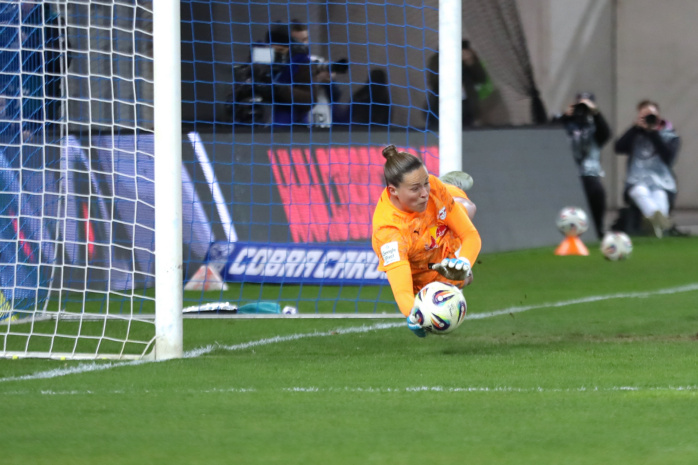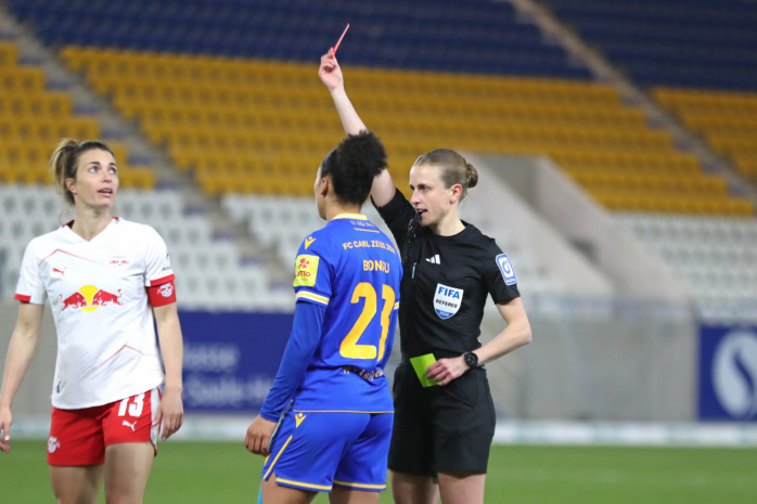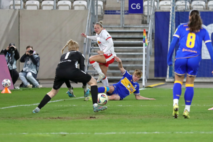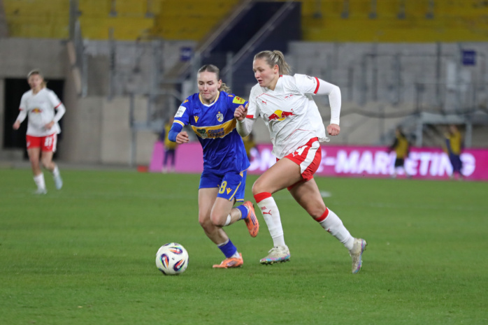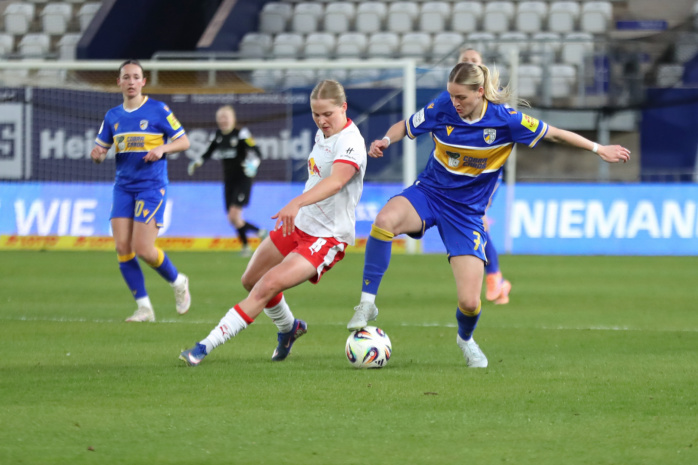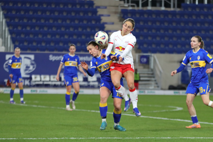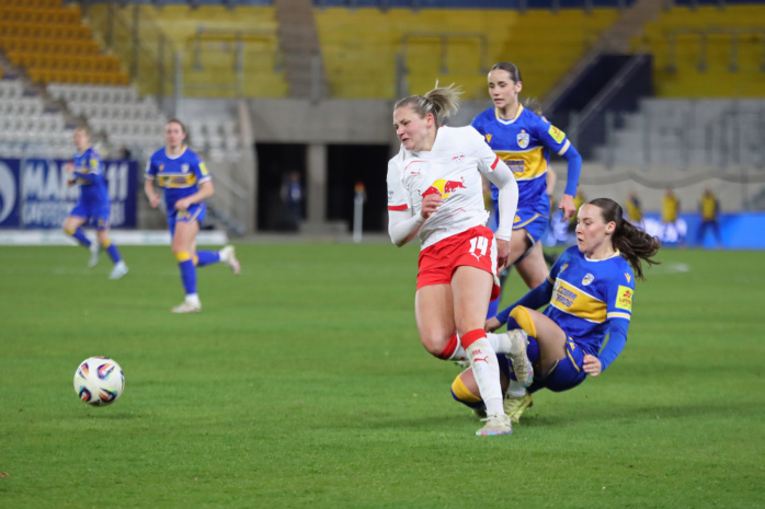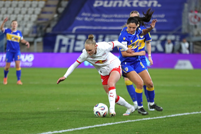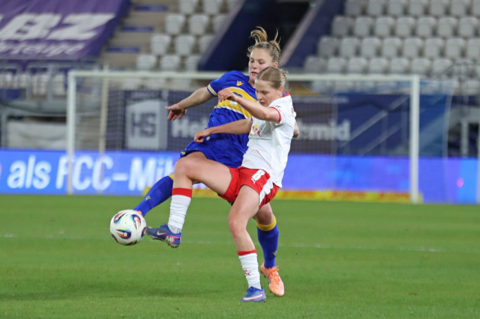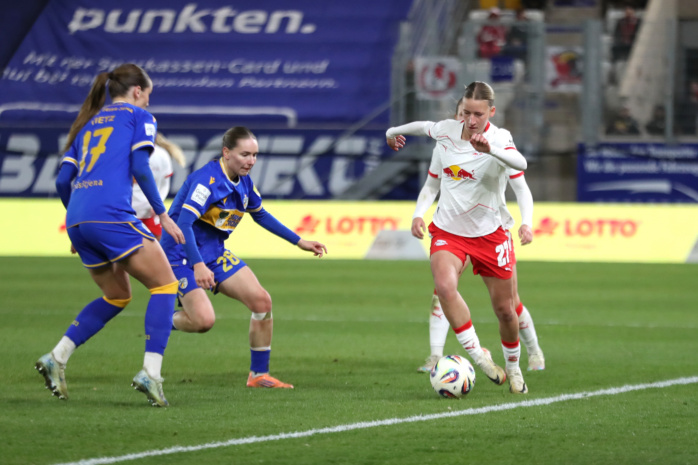 In der zweiten Hälfte hatte zunächst Emilia Kiaer Asgeirsdottir den zweiten RBL-Treffer auf dem Fuß (62.), doch Jenas Torfrau Jasmin Janning klärte mit einem starken Reflex. Kurz darauf gerieten die Gastgeberinnen sogar in Unterzahl. Felicia Sträßer hatte sich innerhalb von nur vier Minuten zwei Verwarnungen eingefangen und musste folgerichtig mit Gelb-Rot vom Platz. Ein Sieg der RB-Frauen schien nun reine Formsache. Doch denkste!