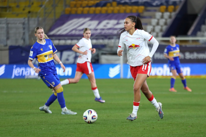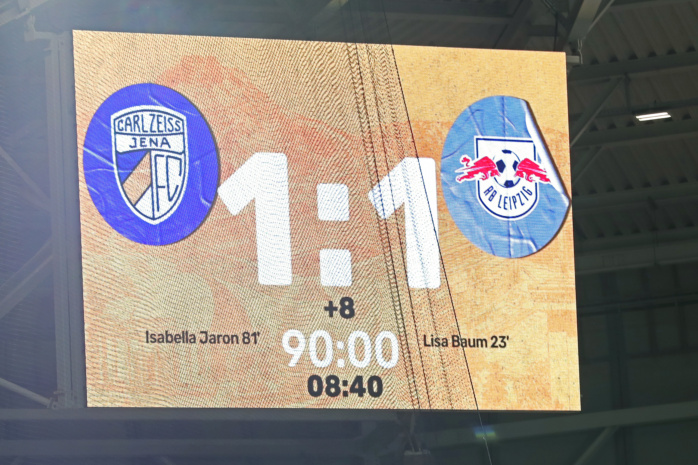 Aus einer scheinbar ungefährlichen Freistoßsituation erzielt der FC Carl Zeiss plötzlich den 1:1-Ausgleich (81.). Aus etwa 35 Metern Entfernung hatte sich Isabella Jaron für eine direkte Ausführung entschieden und RB-Torfrau Elvira Herzog völlig auf dem falschen Fuß erwischt. Trotz achtminütiger Nachspielzeit und einigen verheißungsvollen Aktionen, fand das Team aus Leipzig keine zählbare Antwort mehr.