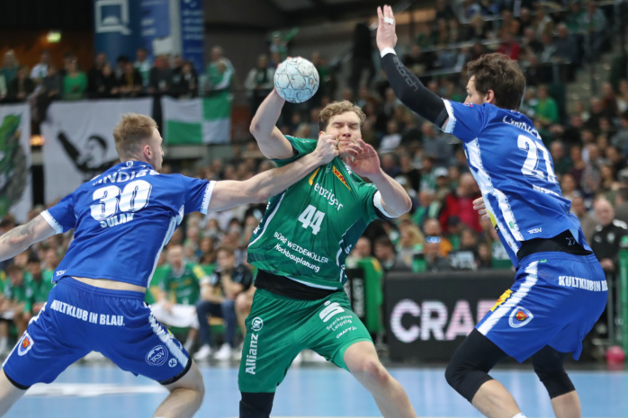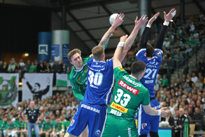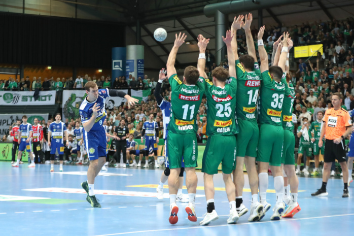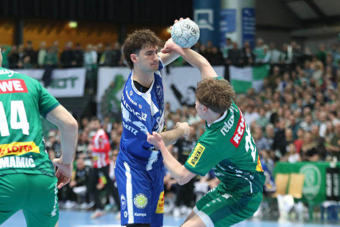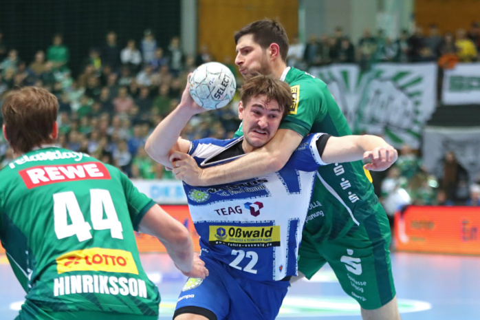 Lediglich einmal – in der Anfangsphase des Spiels – lagen die Gastgeber für wenige Sekunden in Rückstand. Ansonsten hatten die Grün-Weißen in einer engen Partie die Nase meist ein kleines Stück vorn, führten zur Halbzeit mit 15:13. Im zweiten Durchgang zogen sie sogar auf vier Tore davon (18:14), wurden von den kampfstarken Eisenachern dennoch wieder einkassiert (22:22). Als das Bundesliga-Spiel auf die Zielgerade einbog, hatten sich die Männer von Coach Frank Carstens knapp dreieinhalb Minuten vor Ultimo dennoch wieder einen optimistischen 29:26-Vorsprung erarbeitet.
