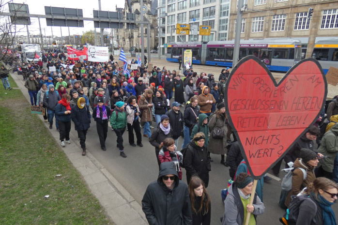 Nach eigenen Angaben haben sich über 2.000 Menschen an der samstäglichen Demo beteiligt. Diese hatte zunächst mit einer Kundgebung auf dem Augustusplatz begonnen und setzte sich als Demonstrationszug durch die City und über den Goerdelerring fort. Die Organisatoren zeigten sich von der hohen Beteiligung in ihrem Ansinnen bestätigt.