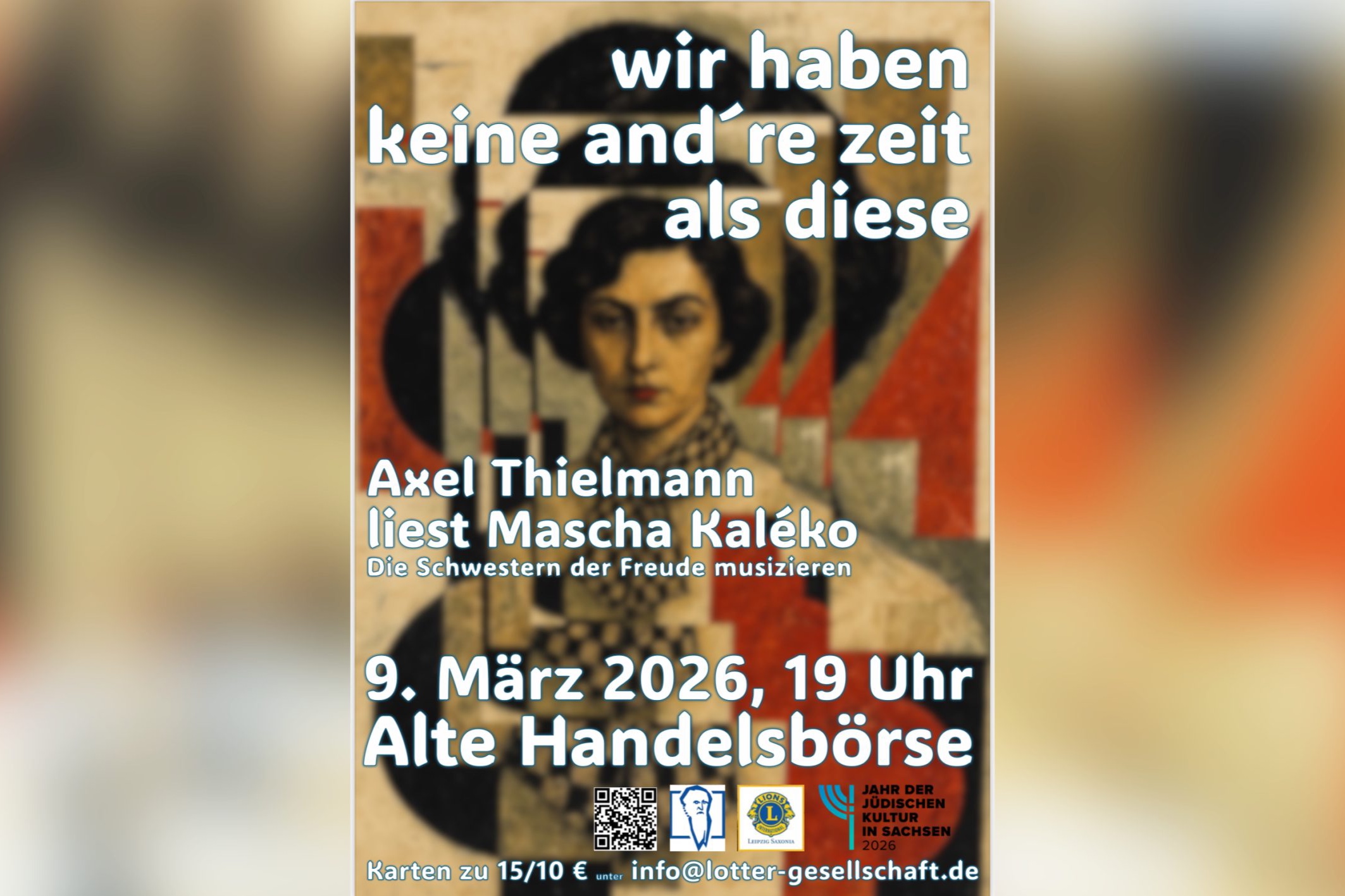 „Wir haben keine andre Zeit als diese.“ Ein Gedanke, der so nicht nur Mascha Kaléko durch den Kopf ging, ihr aber als prägend zugeschrieben wird. Der heutige Abend in der Alten Handelsbörse am Naschmarkt widmet sich um 19 Uhr dem Werk der deutsch-jüdischen Autorin, lädt ein zu einem Blick auf das Leben und die Texte Kalékos. Die Veranstaltung ist Teil des sächsischen Themenjahres „Tacheles 2026 – Jüdische Kultur in Sachsen“ und versteht sich als Beitrag zur Erinnerungskultur.