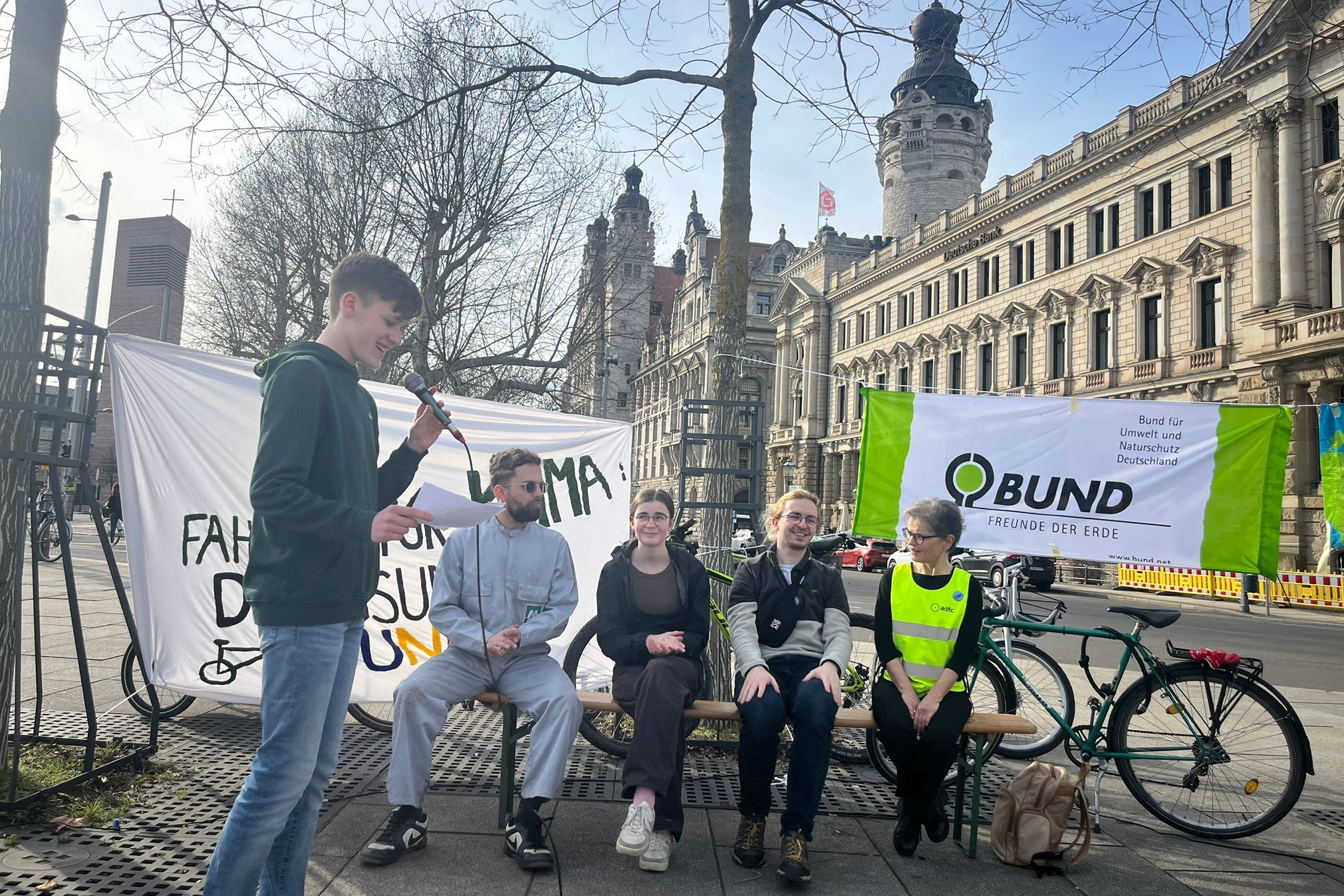 Ein jahrelanger Prozess scheint auch der Ausbau des Innenstadtrings in Leipzig für Fahrradfreund*innen zu sein. Der BUND hat am Samstag gemeinsam mit anderen Gruppen wie ADFC und Fridays for Future für eine konsequente Umsetzung demonstriert. Auf dem Wilhelm-Leuschner-Platz gab es Mitmachaktionen wie Fahrradparcours und Reparaturwerkstatt. Die Organisator*innen sprechen von etwa 500 interessierten Leipziger*innen bei der Aktion.