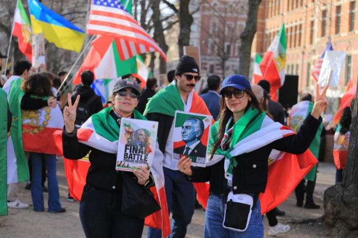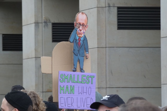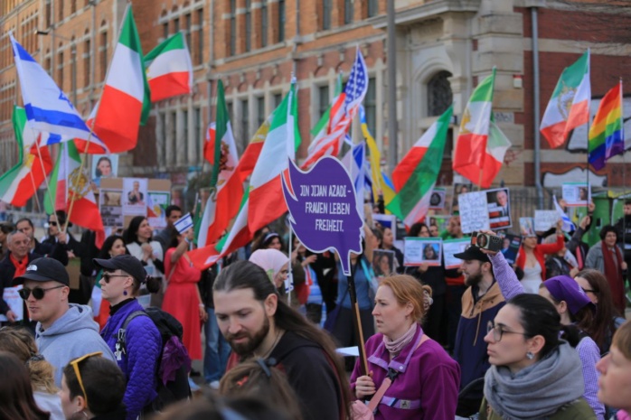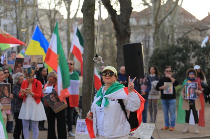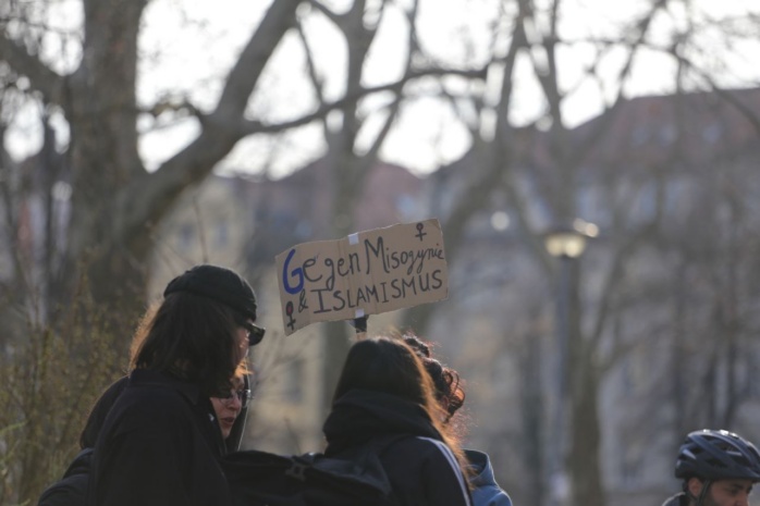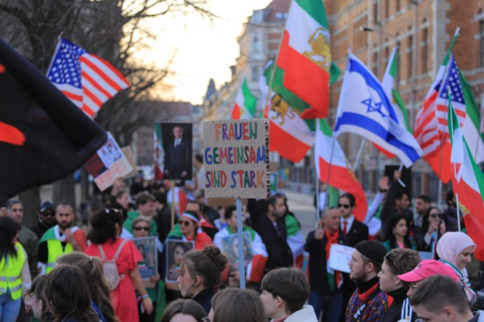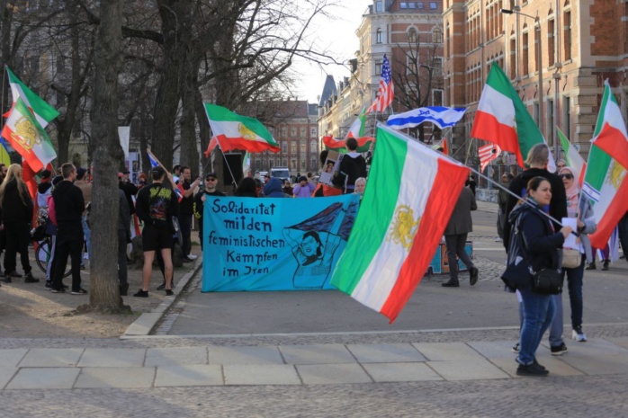 Gegenüber jener Kundgebung gab es noch eine weitere Versammlung. Dort solidarisierten sich die Teilnehmer*innen mit den Menschen im Iran, die gegen das Regime kämpfen. Ein Regime, das Frauen unterdrückt, foltert und tötet. An den kleineren Kundgebungen beteiligten sich insgesamt einige hundert Personen.