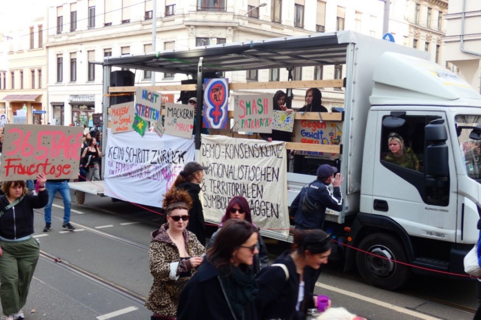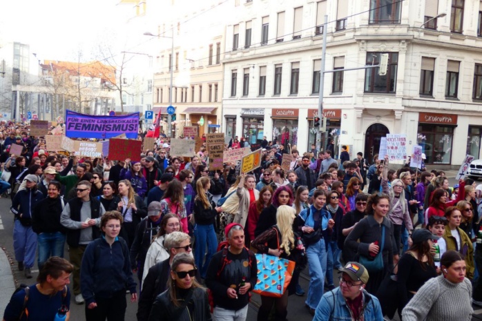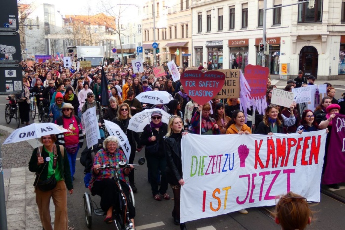 Bundesweit sind am Sonntag viele Menschen für die Rechte von Frauen und anderen benachteiligten Gruppen auf die Straße gegangen. In Leipzig wurde die größte Demonstration von einem breiten zivilgesellschaftlichen Bündnis organisiert. Mehrere tausend Menschen beteiligten sich daran. Die Veranstalter*innen sprachen von 10.000 Teilnehmer*innen. Der Aufzug startete auf dem Augustusplatz und endete am Connewitzer Kreuz.