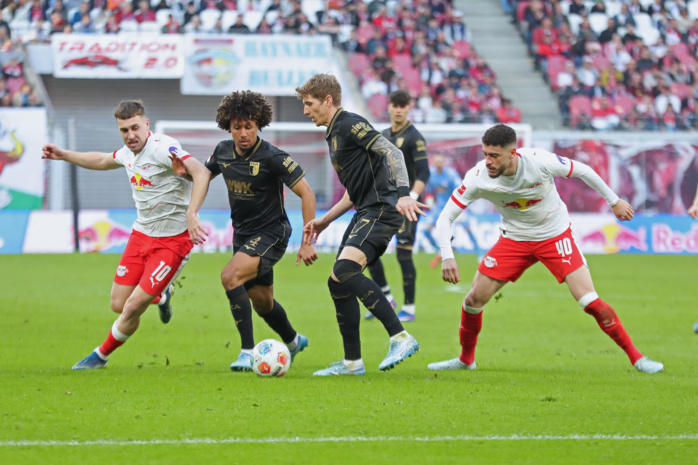 Dank eines späten Eigentors hat RB Leipzig am Samstag sein Bundesliga-Heimspiel gegen den FC Augsburg mit 2:1 gewonnen. Die Gäste waren in der ersten Halbzeit in Führung gegangen. Diomande schoss für Leipzig in der 76. Minute den Ausgleich. In der Nachspielzeit sprang der Ball von der Brust eines Augsburgers ins eigene Tor, sodass sich rund 40.000 Zuschauer*innen noch über einen späten Heimsieg freuen durften. Leipzig bleibt auf Platz 5 der Tabelle.