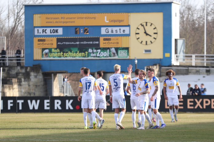 Nicht so erfolgreich lief es für die Leipziger Teams in der Regionalliga Nordost. Während Chemie in Erfurt immerhin ein 2:2 erreichte, musste sich Lok daheim trotz Führung der Mannschaft aus Jena geschlagen geben. Damit hat der FC Carl Zeiss jetzt noch sieben Punkte Rückstand auf Lok und ein Spiel weniger absolviert.