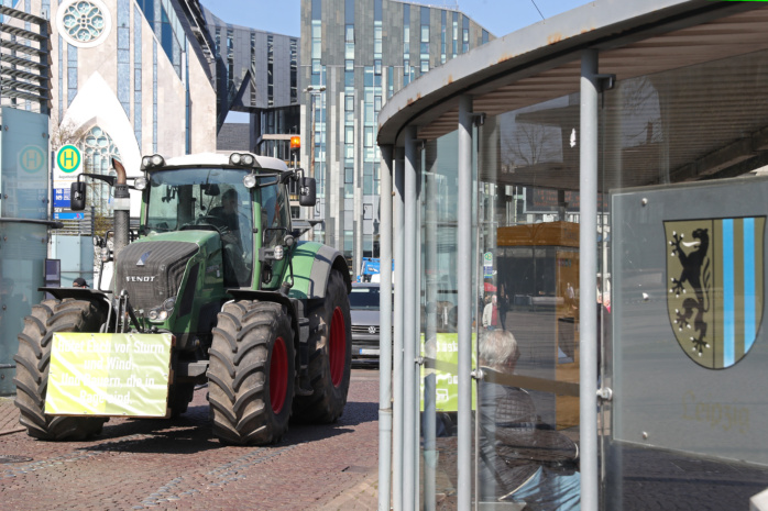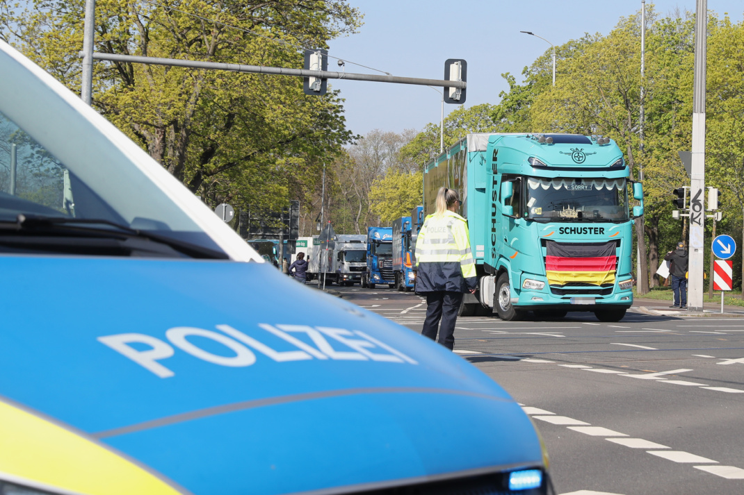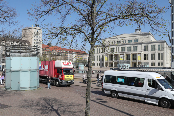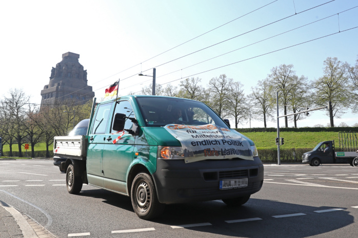 Vom Völkerschlachtdenkmal aus machten sich Pkws, Transporter, Brummis und sogar ein Traktor auf den Weg entlang der Prager Straße bis hin zum Augustusplatz. Hier drehten sie eine Runde um den Innenstadtring, bevor sie einen Zwischenstopp mit kurzer Kundgebung am Augustusplatz einlegten. Initiator Michael Henry Berger, selbst Geschäftsführer eines Möbel-Transport-Unternehmens, sprach dabei von einer „friedlichen, aber nachdrücklichen Demonstration“ und zog dabei sogar Parallelen zur friedlichen Revolution von 1989. Nach der Zwischenkundgebung rollte der Tross wieder zurück zum Ausgangspunkt am Völki.