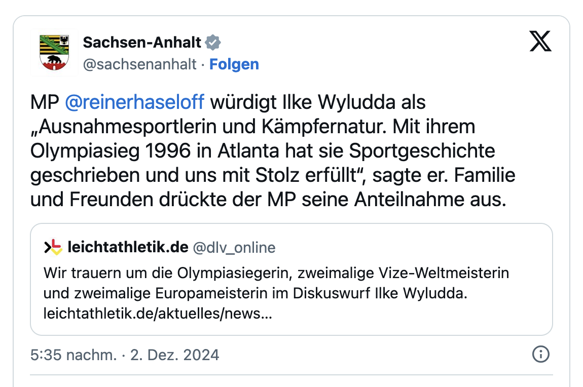 Lizenzhinweis: Das Foto der Sportlerin Ilke Wyludda stammt von Ulrich Häßler und wird mit entsprechender Lizensierung durch das Bundesarchiv auf Wikimedia Commons zur Nutzung freigegeben. Es wurde für die Verwendung auf dieser Seite nicht bearbeitet.