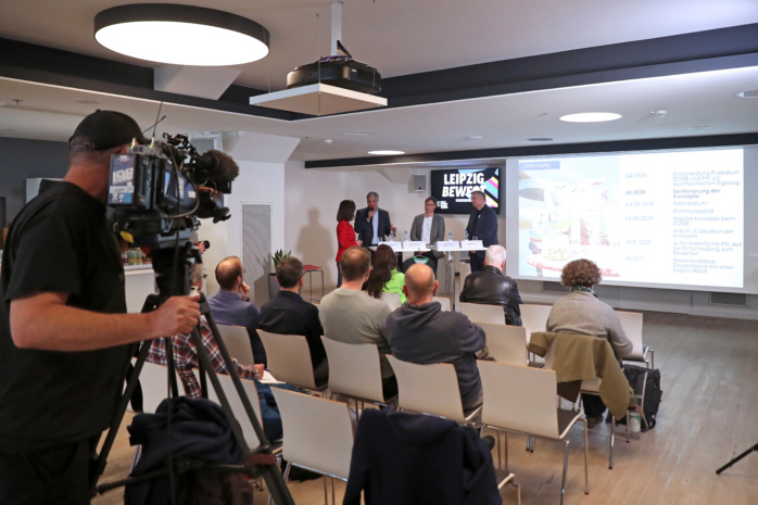 Vorgestellt wurde der aktuelle Stand heute bei einer Pressekonferenz in den Räumlichkeiten der RB-Arena von Kaweh Niroomand (Olympiabeauftragter des Landes Berlin), Sportbürgermeister Heiko Rosenthal (Olympiabeauftragter der Stadt Leipzig) und Markus Otto (DHL – Flughafen Leipzig; Vorstandsvorsitzender „Gold for Leipzig“). Die Fäden der Moderation hielt Franziska Schenk in den Händen. Sie hatte 1994 im Eisschnelllauf selbst schon Olympia-Bronze gewonnen.
