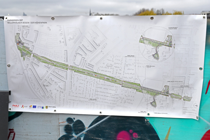 Eine Art Herzstück stellt dabei der über 100 Jahre alte, denkmalgeschützte Sellerhäuser Viadukt dar. Dieser spannt sich – 250 Meter lang – über die Wurzner Straße und flankiert die Sportanlage des SV Leipzig Ost. Früher ratterten hier Züge entlang, heuten werden Bäume darauf gepflanzt. Bis Ende des Monats April sollen 58 Stück davon in die Erde, zum Beispiel Feldahorn, Schnurbaum, Gleditschie oder Hainbuche. Gesellschaft bekommen diese von 90 Sträuchern, 6.500 Stauden und Gräsern sowie 23.000 Geophyten, also mehrjährigen krautigen Pflanzen, wie Narzissen, Hyazinthen oder Kaiserkronen.