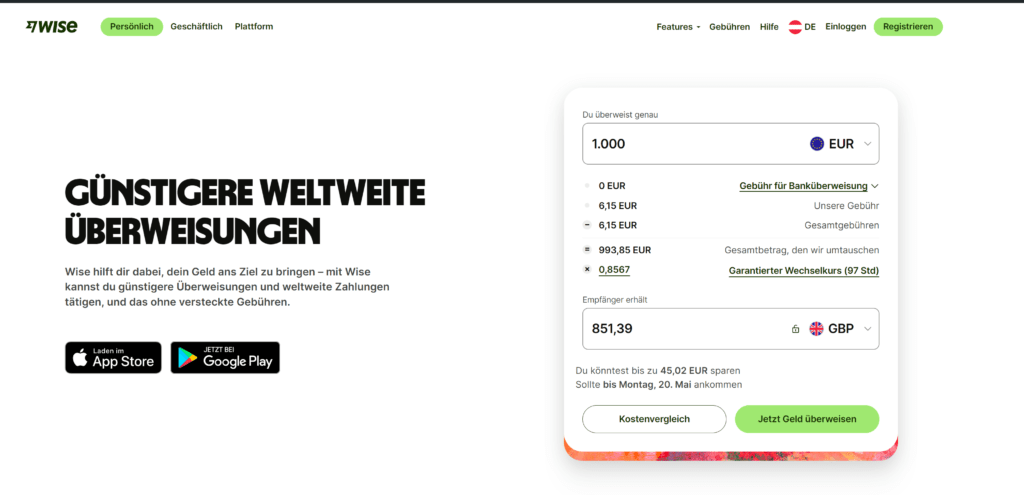 Im Preisbereich überzeugt Wise durch faire und flexible Gebührenmodelle für jede Geldbörse.