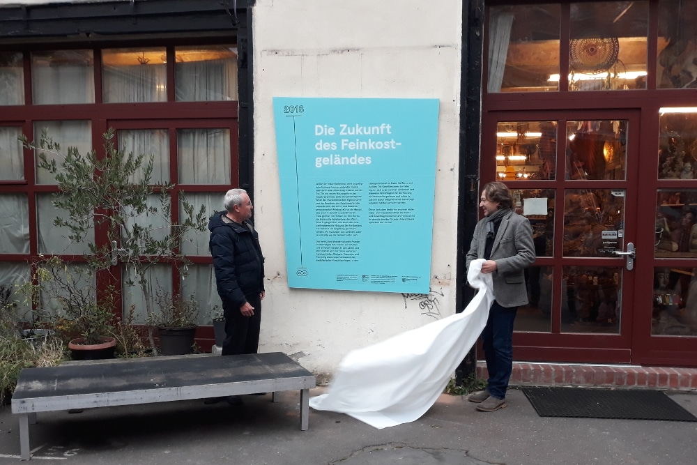 Die Feinkost Leipzig hat am Donnerstag, den 8. November, sieben große Infotafeln zur bewegten Geschichte der vergangenen 100 Jahre veröffentlicht. Darauf sind für Interessierte die wichtigsten Details bestimmter Zeiträume zusammengefasst. Die Infotafeln befinden sich an den Außenwänden der Gebäude und sind daher für Besucher leicht einsehbar. Die Präsentation fand in Anwesenheit zahlreicher Genossenschaftsmitglieder und eines für Industriekultur zuständigen Vertreters der Kulturstiftung Sachsen statt.