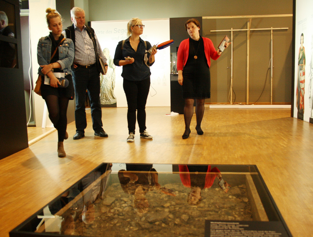Mittelaltergeschichte kann schon kompliziert sein. Aber auch spannend. Wer die Ausstellung besucht, sollte sich wirklich Zeit und Ruhe mitbringen, denn die Objekte beginnen erst zu sprechen, wenn man auch die Erklärungen, Tafeln und Karten studiert. Denn kaum hat man die Stadtgründung hinter sich, stolpert man über ein graues Gemisch aus Lehm, Kies und Schotter: Die Archäologen haben bei den Grabungen zum City-Tunnel am Markt tatsächlich ein Stück Originalpflaster des Leipziger Marktplatzes aus dem 13., 14. Jahrhundert geborgen. Er war zwar bis dahin keine Lehmgrube, wie noch in einigen alten Schriften zu lesen steht. “Aber es war auch nicht der erste Markt der Stadt”, sagt Westphalen. “Es muss noch einen älteren gegeben haben.”