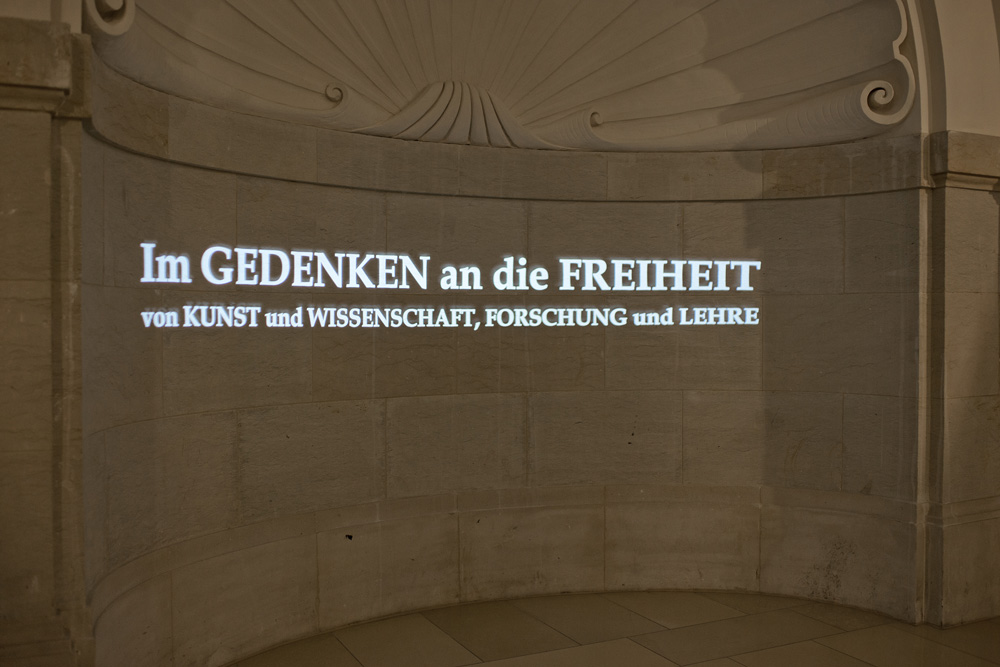 - Christin Lahr: Im GEDENKEN an die FREIHEIT Gedenktafel, Projektion, Prozess (2015). Foto: HGB Leipzig, Christin Lahr