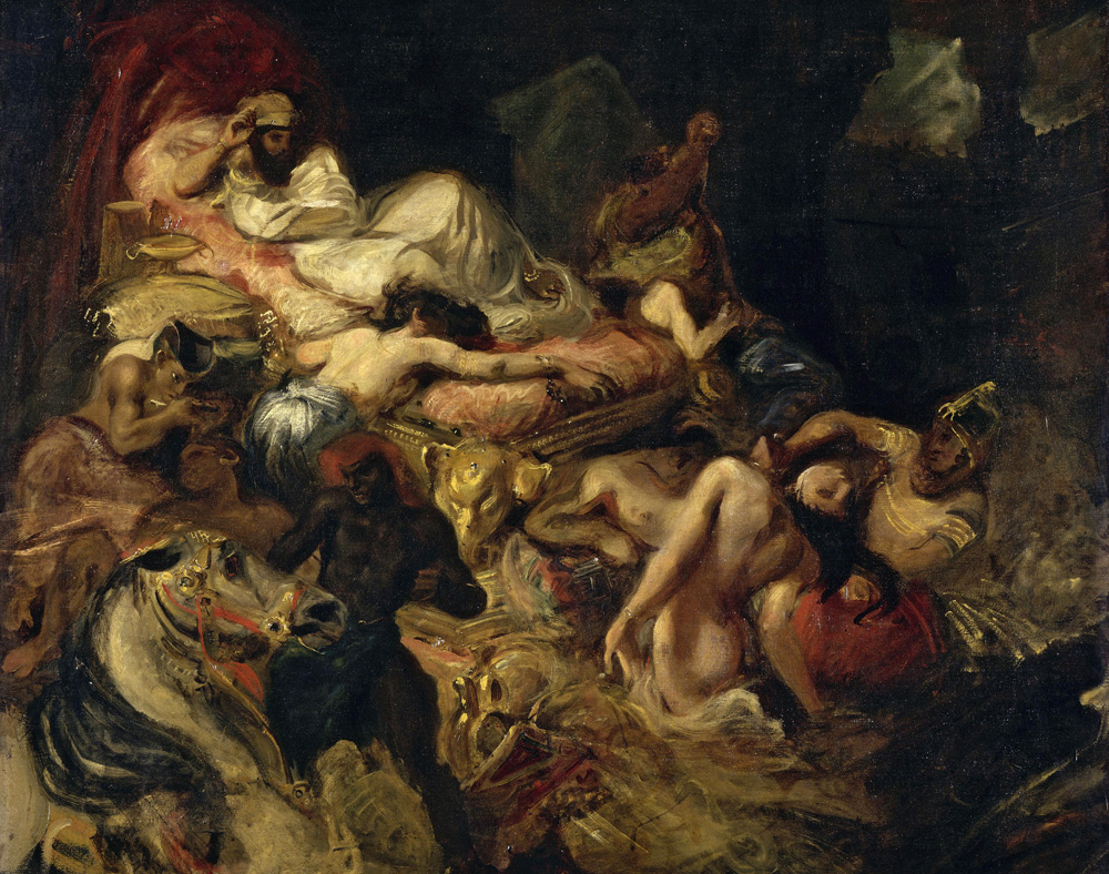 Aber warum erschütterte gerade der “Tod des Sardanapal” die Pariser Kunstkritik 1827 so? Nicolaisen benennt die Ballung von nackten Leibern (offenkundige Erotik), die dargestellte Gewalt und den expressiven Malstil als Gründe. In dieser Ballung haben die drei tatsächlich das ganze 19. Jahrhundert hindurch immer wieder für ordentliche Skandale in Frankreich gesorgt – man denke nur an die Aufregung um Flauberts “Madame Bovary”. Das eben noch rebellische Bürgertum war durchaus bereit, große theatralische Gefühlsinszenierungen anzusehen, aber vor den eigenen emotionalen Abgründen scheute es immer zurück.