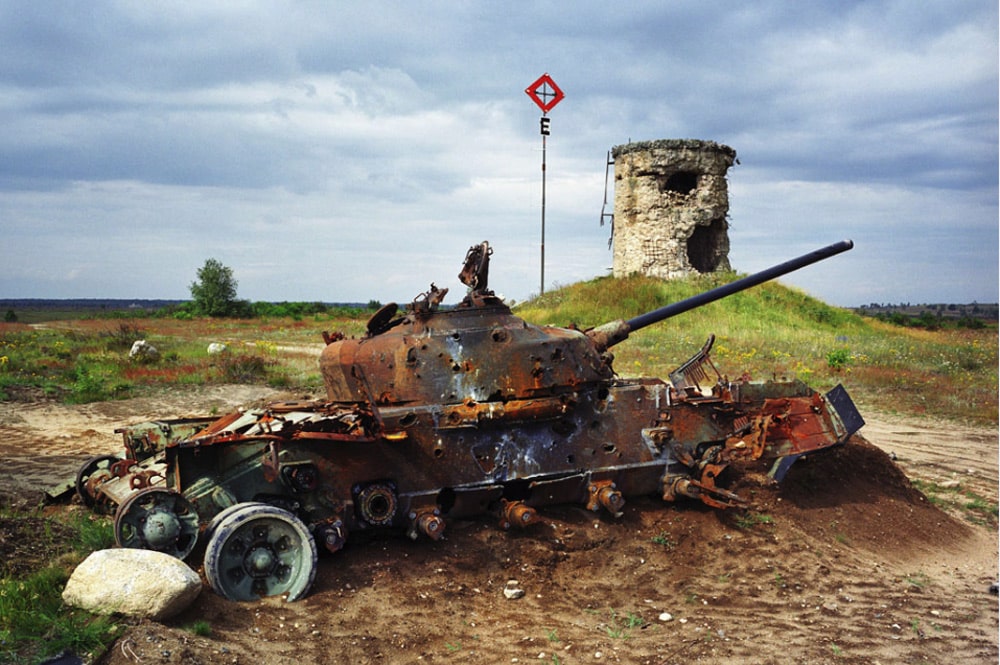 Die Ausstellung vereint verschiedene Serien des Künstlers über die architektonischen Spuren, die von der jahrzehntelangen Konfrontation der Systeme überall in Europa geblieben sind: Erhaltene Wandmalereien in ehemaligen sowjetischen Kasernen, ausgediente verrostete Panzer, stillgelegte Flugzeuge, verbrauchte Munition auf ehemaligem Sperrgebiet.