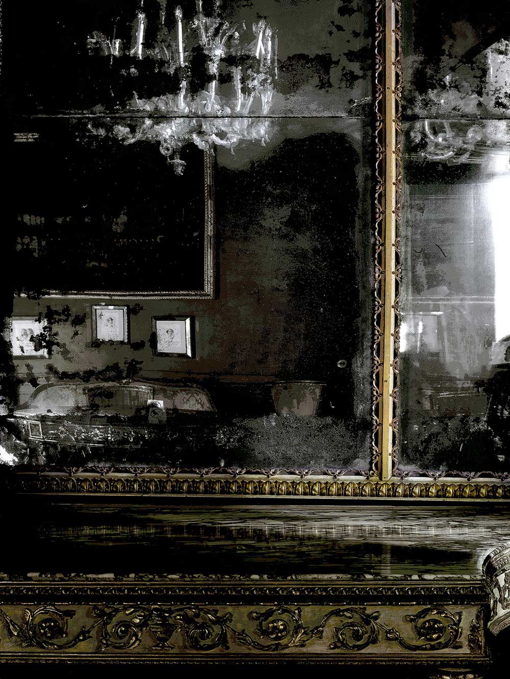 Leiermann: Mit der Serie „Leiermann“ (2010–2018) schuf Schaller ein melancholisches Porträt der Stadt Venedig. Frontal aufgenommene Spiegel, über die sich die Patina der Zeit gelegt hat, gewähren verschwommene Einblicke in die verwitterten Prunksäle verlassener Palazzi der Lagunenstadt. Kein Mensch ist auf den Bildern zu erkennen, allenfalls Spuren vergangenen Lebens wie Gemälde an den Wänden, Kronleuchter, Tische und Polstersessel im Rokokostil.