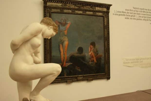 Dank der Leihgaben des Wiener Belvedere können die Leipziger auf die Großtaten des Malers und Grafikers blicken, der nicht nur die griechische Antike in der bildhauerischen Arbeit wiederentdeckte, sondern offenkundig auch ausklingende und abklingende Trends seiner Zeit aufgriff und in seinem Sinne umformte: u. a. die Malerei der Nazarener und die aus England nach Deutschland schwappende Bodybuilder-Manie.