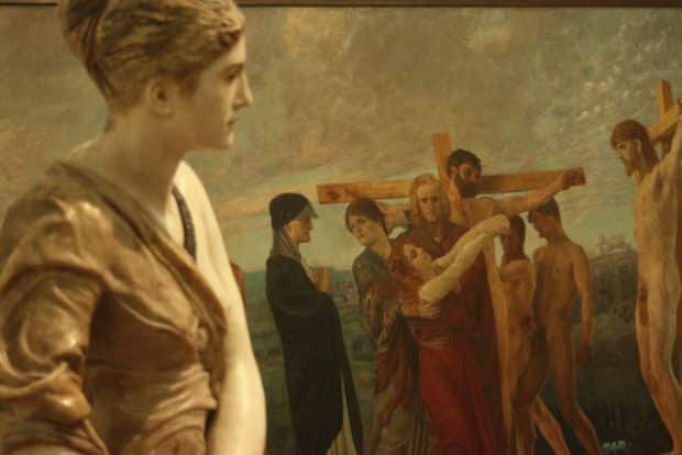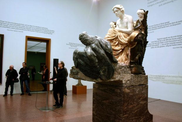 Die am 4. März noch im Aufbau befindliche Ausstellung stellt schon jetzt einen Paukenschlag dar, der Klingers Opus Magnus wieder zurück ins Gedächtnis der Leipziger und auch der internationalen Kunstwelt zurückholt. Sechs Abschnitte auf zwei Etagen werden mit (nicht nur mit Klingers) Skulpturen und Plastiken, Entwürfen, Skizzen, Zeichnungen, Gemälden und Grafiken bespielt, und mit ganz viel Leipziger Kunstgeschichte sowie Liebe zum Detail.