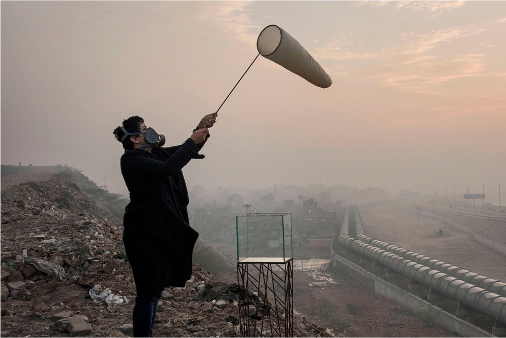 Täglich verwehen Fetzen der als „mar de plástico“ bekannten Gemüseplantagen in Südspanien ins Meer; Raul Walch dienen sie als Forschungsobjekt und Material für sein raumgreifendes Mobile. Während Erik Sturm aus dem Feinstaub, den er von Fensterbänken stark befahrener Straßen kratzt, Farbe herstellt, macht Vibha Galhotra die massive Luftverschmutzung in New Delhi als „Black Cloud“, einer Wolke aus schwarzen Papierdrachen, sowie in performativen Fotografien und Videos sichtbar.