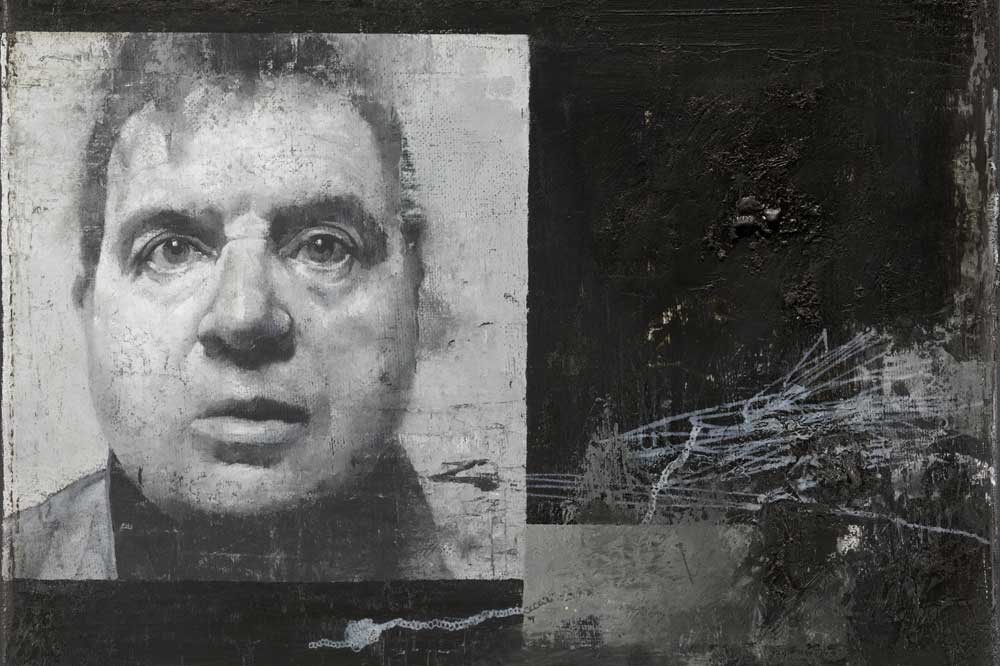 Und abschließend: „Sebastian Schrader hat diese Form aufgegriffen. In Richters Tableau kommt jedoch kein bildender Künstler vor. Schrader blickt in seiner Werkgruppe also in sein eigenes Metier. Dabei bettet er die Konterfeis in seine derzeitige Art der Bildorganisation ein. Prägnant sind die dunklen teerigen Hintergründe und die zufällig scheinenden Kratzzeichnungen. Es sind spannende Bilder, denn sie führen ein Paradox vor: Die Verschmelzung von Werk und Person hilft einzuordnen und schafft Vertrautheit. Gleichzeitig nimmt sie dem Werk die Autonomie und stellt das Betrachten immer unter ein Vorzeichen. Es sind eigenständige Bilder, die der Anwesenheit des Künstlers im Grunde nicht bedürfen.“