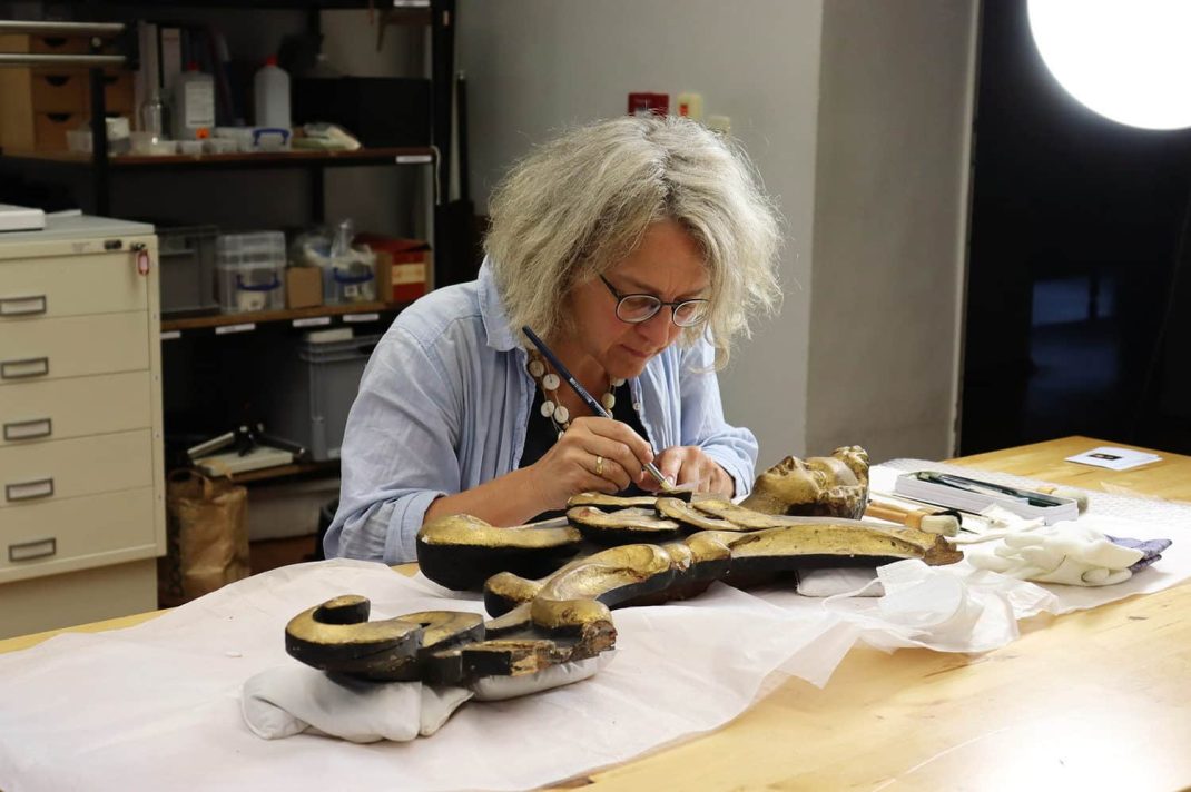 Übergeben wurde das Rahmenfragment durch Michael Stephan, Leiter der zentralen Dokumentation des Stadtgeschichtlichen Museums Leipzig, an Claudia Nicolaisen-Luckenbach, Dipl.-Restauratorin für Gemälde und Skulpturen an der Kustodie.