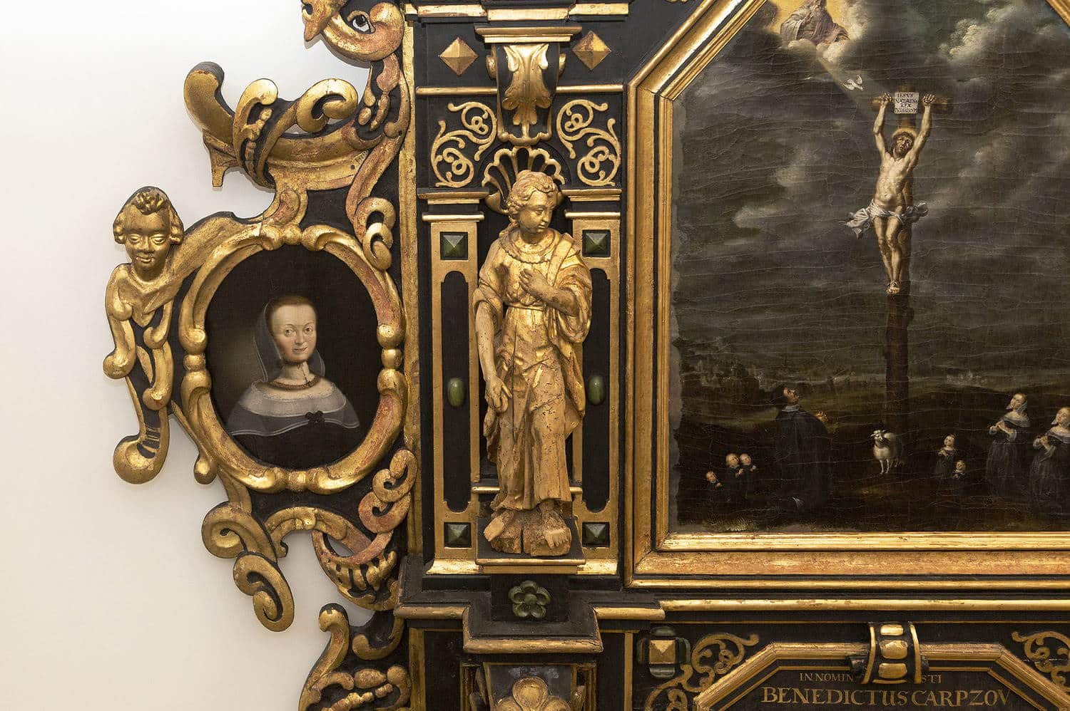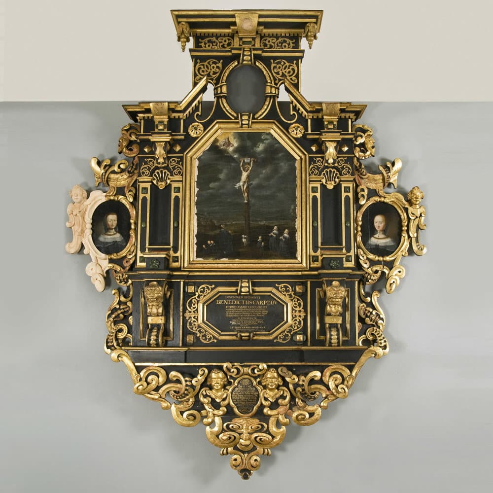 „Benedikt Carpzov d. J. (1595–1666) selbst hatte das Epitaph 1653, also 15 Jahre vor seinem Tod, für sich und seine beiden Ehefrauen in Auftrag gegeben. Carpzov war einer der einflussreichsten deutschen Strafrechtswissenschaftler in der Frühen Neuzeit“, sagt der Kustos der Universität Leipzig, Prof. Dr. Rudolf Hiller von Gaertringen. „Der Universität Leipzig war er als Student der Rechtswissenschaften und durch seine langjährige Tätigkeit als Ordinarius der Juristenfakultät verbunden. 1666 wurde er in der Universitätskirche bestattet.“