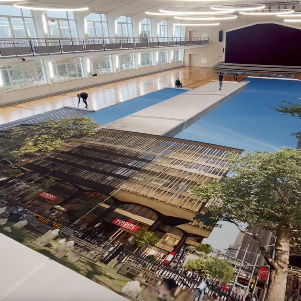 Kontrolle des Probedrucks des Panoramas NEW YORK 9/11. Foto: Asisi