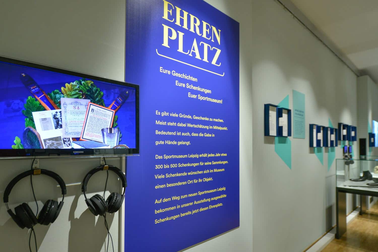 Auf dem Weg zum neuen Sportmuseum in Leipzig gibt das Stadtgeschichtliche Museum bereits jetzt ausgewählten Schenkungen der sporthistorischen Sammlung einen Ehrenplatz. In der Ausstellung „EHRENPLATZ – Eure Geschichten. Eure Schenkungen. Euer Sportmuseum!“ werden diese vom 21. September bis zum 26. Februar im Haus Böttchergäßchen des Stadtgeschichtlichen Museums Leipzig präsentiert.