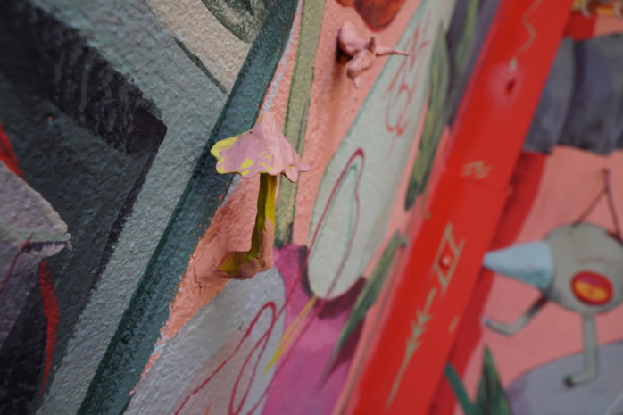 Bekannt ist GABS für großformatige japanische Motive auf Leinwänden, Verkehrszeichen oder Wänden. Doch nicht nur auf die großen Kunstwerke galt es, bei der ibug zu achten. Die Fülle an Details machte die Ausstellung so spannend wie besonders.