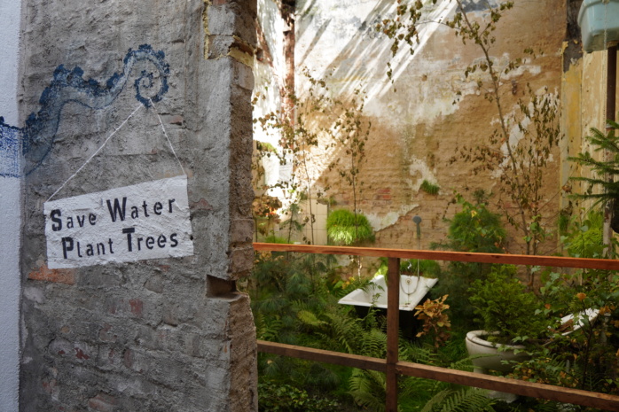 An einem Tag ist der Besuch kaum zu schaffen. Nicht wegen der fehlenden Zeit, sondern weil der Kopf vor Farben, Konzepten, Kunstwerken und Details überquillt – aber in einem guten Sinn. Anders als in vielen Ausstellungen sorgen frische Luft, Tageslicht und die Pflanzen, die durch die Fenster und Löcher in den Wänden hereinwachsen für ein angenehmes Klima.